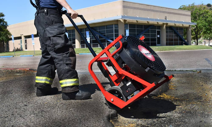 2、EX150Li充电式排烟机采用超大车轮设计(直径:21.59cm 厚度:6.35 cm);