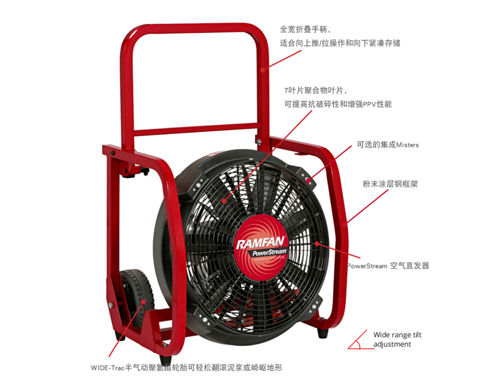 3、采用PowerStream "力弓"技术使风量更集中,风力更强大,喷射距离更远,可实现无障碍出入火场通道,并可能有效降低使用中产生的噪音;