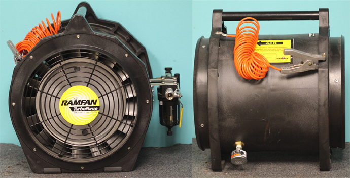 9、紧凑型气动风机, 气动马达在管道外排气。