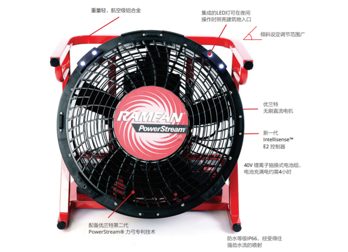 4、EX50Li锂电池动力消防排烟机配备无刷直流电机;